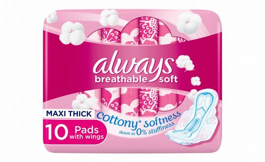 حافظي على حمايتك مع الفوط الصحية Always Dry Maxi سميكة. جفاف وجفاف 100%. راحة ضد التسرب تحميك من البقع لمدة تصل إلى 8 ساعات. يحتوي على مناطق وأجنحة حماية زرقاء و6 مناطق تمدد تتميز بجفاف طويل الأمد