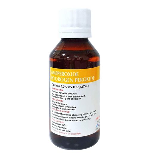 وصف قصير: يحتوي على 6.0% وزن/حجم H O (بيروكسيد الهيدروجين) مضاد للجراثيم خفيف مطهر للجلد وصف طويل: Ameya FZC Ameperوكسيد محلول بيروكسيد الهيدروجين هو مطهر خفيف يستخدم على الجلد لمنع الإصابة بالجروح البسيطة والخدوش والحروق. يتم استخدام بيروكسيد الهيدروجين في جميع أنحاء صناعة الرعاية الصحية ومن قبل المستهلكين للتنظيف والتطهير. يتم استخدامه كعامل مضاد للميكروبات وعامل مؤكسد لأغراض متعددة بما في ذلك مطهرات الإسعافات الأولية المستخدمة لتنظيف الجروح. الفوائد: يستخدم في تنظيف وتقشير الأسنان. تبييض الأسنان يستخدم كمطهر ومطهر كإسعافات أولية لتطهير الجروح كيفية الاستخدام: استخدمه حسب توجيهات الطبيب