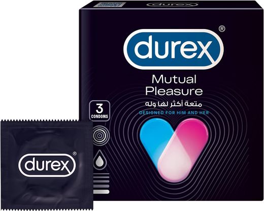 إرشادات الاستخدام: 1. تحقق من تاريخ انتهاء الصلاحية وتأكد من سلامة العبوة. 2. افتح العبوة بعناية، وحاول عدم إتلاف الواقي الذكري بأشياء حادة أو أسنانك. 3. اضغط على طرف الواقي الذكري لإزالة أي هواء وتأكد من وجود مساحة لجمع السائل المنوي. 4. ضع الواقي الذكري على طرف القضيب المنتصب. 5. قم بلف الواقي الذكري وصولاً إلى قاعدة القضيب، مع التأكد من أنه أملس وخالي من أي فقاعات هواء. 6. بعد القذف، أمسك الواقي الذكري من القاعدة أثناء سحبه لمنع انسكاب السائل المنوي. 7. تخلص من الواقي الذكري المستخدم بشكل صحيح في سلة المهملات، وليس في المرحاض. الوصف: محتوى العبوة: تحتوي العبوة على 3 وحدات من الواقي الذكري Durex Mutual Pleasure RIBBED & الواقي الذكري المنقط: تم تصميم الواقيات الذكرية من Durex Mutual Pleasure لتحفيز إضافي لك ولعائلتك. شريكك متعة طويلة الأمد: يحتوي على البنزوكائين (5 بالمائة) الذي يطيل العاطفة والنشاط. يجعلها تدوم لفترة أطول - من السهل ارتداؤها: الواقيات الذكرية المصنوعة من المطاط الطبيعي الشفاف مع تشحيم السيليكون العادي تجعل من السهل ارتداؤها - سمك منتظم: المتعة المتبادلة للواقيات الذكرية من ديوركس بسُمك منتظم - ملاءمة ممتعة: مزيج مثالي من مرونة ومرونة لملاءمة رائعة. حجم الواقي الذكري: يبلغ عرضه الاسمي 56 مم"
