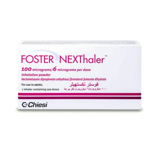 يتم بيع فوستر نكسثالر 100/6 ميكروجرام للاستنشاق، 120 قطعة على طلبات من صيدلية الواحة وسيتم توصيله إليك في جميع أنحاء الإمارات العربية المتحدة في غضون دقائق. تسوق عبر الإنترنت واستمتع بخدمة التوصيل السريع لدينا.