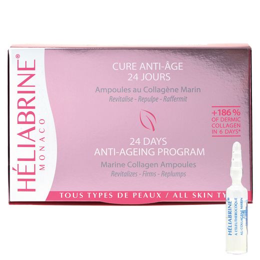 يعمل هذا العلاج المكثف المضاد للشيخوخة على شد البشرة الناضجة أو المتعبة أو الضعيفة وإعادة ملئها. تحتوي هذه الأمبولات على نسبة عالية من الكولاجين البحري والعوامل الأخرى، وهي تحفز إنتاج الكولاجين والإيلاستين الذي ينخفض أثناء عملية الشيخوخة.