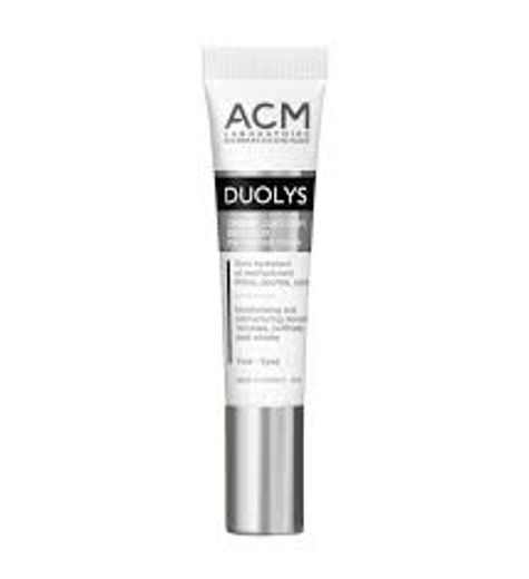 Short Description: • Moisturizing and restructuring skin care • For wrinkles, puffiness and dark circles • ContainS moisturizing and restructuring agents Long Description: ACM Duolys Eye Contour is rich in stabilized vitamin C, moisturizing and restructuring agents, Duolys eye cream visibly creates the signs of aging skin. Wrinkles are slippery. Dark circles are thinned and softened. The look is illuminated. Benefits: • Dark circles are lightened and reduced • Rich in vitamin C How To Use: Apply Duolys Eye Contour Cream morning and/or evening with light patting around the eyes from inside to outside.