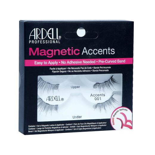 Short Description: • Easy to apply • No adhesive needed • Pre-curved with upper and under magnetic lashes Long Description: Ardell Professional Magnetic Accents 001 False Eyelash are light volume with just the right length, blends seamlessly with the lashes for the most natural look ever. It features a flared lash style and pre-curved for to perfectly fit eyelid contours. It makes sure that falsies are secure and comfortable even at heat of the moment. Benefits: • Give natural lashes a sweet and subtle boost • Fantastic and flared finish • Secure and comfortable lashes How To Use: • Do not share magnetic lashes with others • Only wear one set of magnetic lashes per eye at a time • Please refer to the package for detailed usage instructions