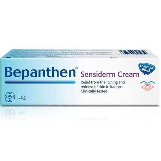 Short Description: • Bepanthen Sensiderm cream helps relieve itch and redness caused by skin irritation and for managing eczema symptoms • Sensiderm cream can be applied as needed on non-wounded skin of babies, children or adults • A gentle skin care product that relieves eczema symptom during flares, repairs skin barrier functions, and helps keep skin hydrated • Free from cortisone, preservatives, and perfumes, Sensiderm skin cream is clinically tested by pediatricians and is suitable for both babies and adults • Bepanthen Sensiderm helps relieve itch within 30 minutes Long Description: Bepanthen Sensiderm is a cream from Bepanthen's Eczema Family, a line developed to provide relief and protection for sensitive and eczema-prone skin. Its effective cortisone-free formula consists of high quality, healing ingredients. It also contains no preservatives or perfumes ensuring that this cream is gentle enough for even the most delicate skin. Bepanthen Sensiderm cream is intended for the relief of itchiness and redness caused by various skin irritations, including eczema and relieves eczema symptoms during flares. You can pair it with the Sensidaily cream, used during flare-free periods, for optimal results. Gentle but effective, Bepanthen Sensiderm cream repairs the skins barrier function which in turn relieves itchiness and soreness. It also improves the skins hydration, keeping moisture locked in for longer. Regeneration of the skin helps it to heal and diminishes the urge to scratch. It does not contain any cortisone, preservatives, colorants, or perfumes. To achieve desired results apply Bepanthen Sensiderm once, or a few times a day as required, and gently rub it into the skin. Before applying the cream make sure the skin is dry. One application aids itch relief within 30 minutes. Indicated also for use on healthy and non-damaged baby and adult skin - the formulation had been clinically tested by pediatricians. Scientifically-formulated with pro-vitamin B5, nicknamed the skin vitamin, Bepanthen is at the cutting edge of skin care treatment after 75 years. Benefits: • Relieves redness caused by dry skin and allergic reactions • Relieves redness caused by atopic dermatitis and eczema • Supports the recovery of the skin How To Use: • Bepanthen sensiderm cream is intended for the relief of itch and redness caused by skin irritation • Use on non-wounded skin of babies , children and adults . Such skin irritations occur in conidtions like dry skin, atopic dermatitis, eczema, allergic reacations • Bepanthen sensiderm can be applied as needed