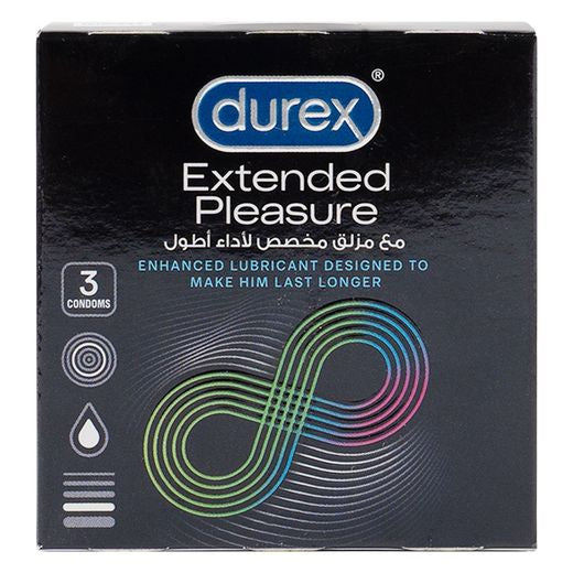 Description: • Satisfaction that lasts longer! Durex Extended Pleasure Condoms for men are made with Performa™ Silicon lubricant that contains 5 Percent benzocaine, a local anaesthetic that helps him last longer. • With a nominal width of 56 mm, extended pleasure condoms for men offer a pleasurable fit because of its transparent, natural rubber latex material with a teat end. • With over 90 years of experience, these Durex condoms enhance your lovemaking pleasure by making the intimacy last longer. Trusted by millions, the condoms are 100 Percent electronically tested and are specially made which makes them smell better. All the pack contents are discreetly delivered with no identification on the boxes.