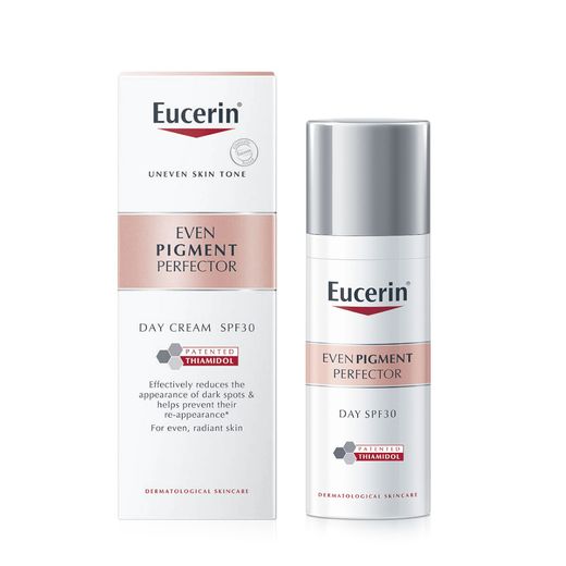 Short Description: • Day cream • SPF 30 • Even pigment perfector • Dermatologically tested Long Description: Eucerin Even Pigment Perfector Day SPF30 Cream with patented thiamidol which acts as the root cause of uneven skin tone. It is clinically proven to help reduce production of melanin, preventing the re-appearance of dark spots with regular usage. Benefits: • Helps to prevent the formation of future sun-induced dark spots • Effectively reduces the appearance of dark spots and helps prevent their re-appearance • For even, radiant skin How To Use: • Apply in the morning. • Apply maximum 4 applications of all products with thiamidol per day. • Avoid eye contact. • Store below 25 degrees celsius.