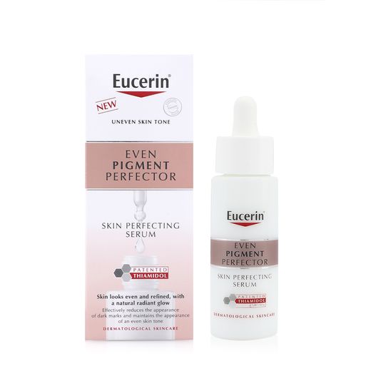 A serum used to even the skin tone and brighten dark spots Eucerin Even Pigment Perfector Serum 30 ml 98350 For Whitening Eucerin Even Pigment Perfector Serum is a skin-perfecting serum used to even the tone of the skin and reduce the appearance of dark spots. It is composed of Thiamidol which effectively lessens the appearance of visible dark spots and marks. Eucerin Even Pigment Perfector Serum also contains Glycerin and Hyaluronic acid used to guarantee a glow that is natural with skin that feels smooth, hydrated, and supple The use of crystal technology in its formulation gives a light texture that is suitable for all skin types and can be added to all skincare routines. Eucerin Even Pigment Perfector Serum is absorbed quickly by the skin.