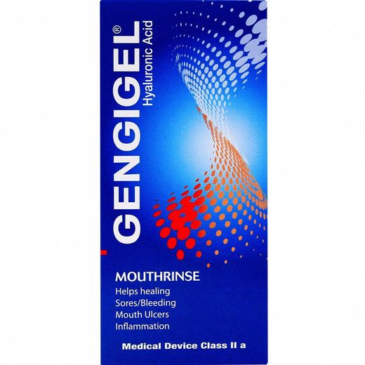 Short Description: • Mouth rinse that helps in healing • Reduces the sores and bleeding • Relieves mouth ulcers and inflammation Long Description: Gengigel is a medical device containing high molecular weight hyaluronic acid obtained by a biotechnological manufacturing process which guarantees a high level of purity. Its formulation is specifically created in order to resemble that of the hyaluronic acid found in normal gingival tissue. The application of hyaluronic acid provides a periodontal tissue/fluid balance with accelerated healing and repair functions by preventing the deficiency of natural gingival hyaluronic acid and enhancing its effects. Benefits: • Extremely safe and can be used without restriction by children, pregnant women and the elderly • Suitable for diabetics • Can be safely used during specific therapies How To Use: • Rinse with 10 mL for 1-2 minutes • The compound is ready for use, do not dilute