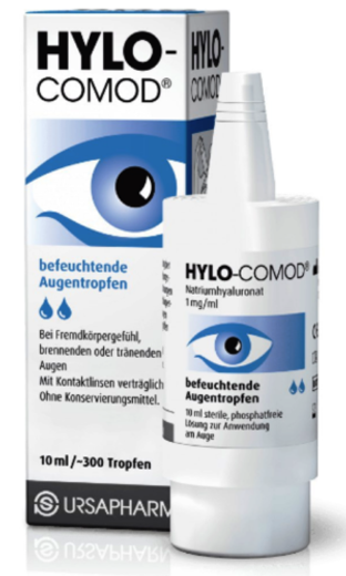 Short Description: • Lubricating eye drops • Compatible with contact lenses • Preservative free and citrate-buffered, i.e. phosphate free • Very economical, hence low treatment costs Long Description: Hylo Comod 0.1% Eye Drops is classic among the dry eye treatments. The active ingredient is the naturally occurring endogenous sodium hyaluronate which is ideally suited as a long-lasting, intensive ocular lubricant. Due to its chemical structure, sodium hyaluronate binds and retains many times its own weight in water. It adheres perfectly to the ocular surface and forms a uniform and stable film that keeps the eyes lubricated. Hylo Comod is provided in the patented COMOD multi-dose device that, in a unique way, prevents contamination of its contents. Benefits: • For moisturising and hydrating the surface of the eye • Relieves dryness, itching, burning or foreign body sensations • Suitable for hydrating all contact lenses too How To Use: • Read the enclosed leaflet before use