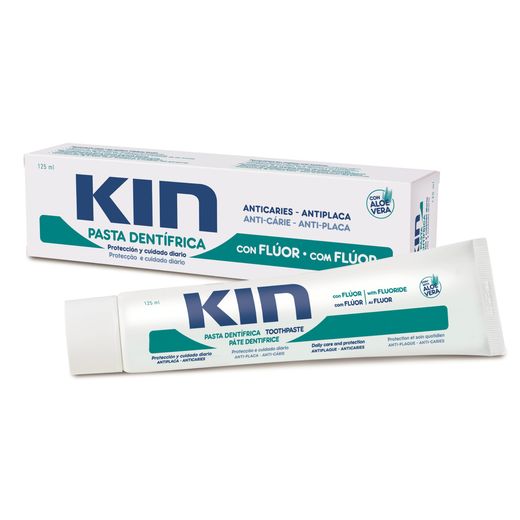 Short Description: • Daily care and protection • Anti-plaque tooth paste • Daily care and protection • Formulated for optimal oral hygiene • With fluoride and Aloe Vera Long Description: Kin Fluoride Toothpaste is an ideal product to prevent cavities, protect the gums, remove bacterial plaque and remineralizer enamel. It gives maximum protection with its antiseptic formula. Benefits: • Prevent tooth decay • Anti-plaque tooth paste provides daily care and protection • Remineralizes enamel How To Use: • Brush your teeth for 2 or 3 minutes, at least twice a day, preferably after each meal and before bedtime