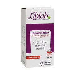 Non-drowsy Cough relieving Spasmolytic Mucolytic Cherry flavor Liblab Cough Syrup contains emetine alkaloids and saponins which gives it a unique triple action to control productive cough. It is used for cough due to upper respiratory infections, acute bronchitis and chronic bronchitis. Benefits: Loosen the mucus from the chest Helps to expel mucus easily through coughing Relieves respiratory tract inflammations symptoms associated with cough How to Use: See enclosed leaflet. Shake well before use.