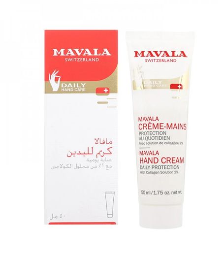 Mavala Hand Cream 50ml.The MAVALA HAND CREAM is specially formulated for dry, damaged hands or for those whom you would simply like to be protected. Its composition blends marine collagen, very moisturizing, and allantoin well-known for its soothing properties, to soften dry skin and prevent roughness and redness.