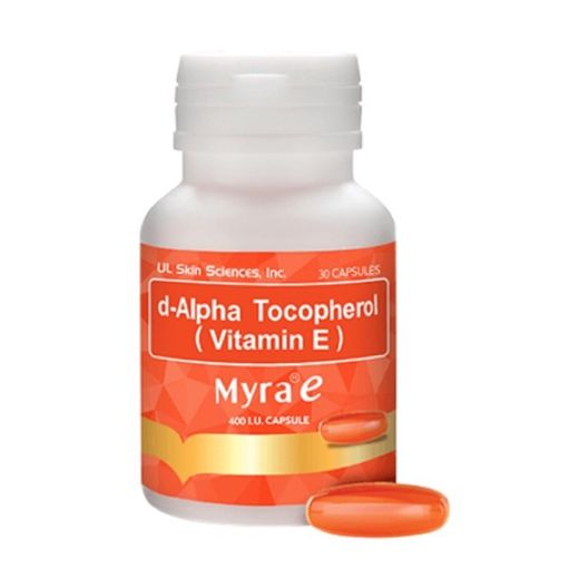 D-Alpha Tocopherol (Myra 400-E) Powerful antioxidant Contains Natural Vitamin E Myra E 400 IU Capsule is made from natural Vitamin E, a powerful antioxidant that helps remove harmful free radicals & promote cell & tissue renewal. With Myra Vitamin E, you can fight free radicals, repair damaged cells, and protect the healthy ones. Its antioxidant properties keep your skin nourished, providing lasting, healthy skin from within. Having healthy skin means that you will always have moisturized and glowing skin throughout the day. Benefits: Helps achieve healthy skin from within Helps boost immunity Helps increase resistance against sickness Helps protect cells from damage How to Use: Read the dosage instruction provided on the pack