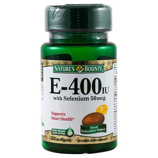 Short Description: • Supporting prostate health and the immune system • Mineral nutritional supplement • Effective antioxidant Long Description: Nature's Bounty E-400IU with Selenium 50 mcg Softgels promotes immune function and helps support cardiovascular health. Vitamin E helps fight cell-damaging free radicals in the body. Free radicals can contribute to oxidative stress, which in turn may contribute to premature ageing of cells. Selenium is believed to be an essential mineral that supports the immune system, fertility, and cognitive function. Benefits: • Supporting prostate health and the immune system • Mineral nutritional supplement • Effective antioxidant How To Use: • For adults, take one (1) softgel daily, preferably with a meal.