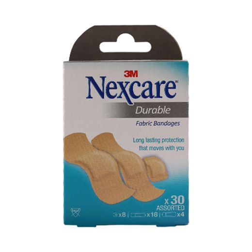 Short Description: • Durable fabric bandages • Long lasting protection that moves with you • Latex free material • Three diffrerent size bandages Long Description: When an ordinary bandage just won't do, reach for a more durable bandage that flexes and sticks with you. Flexible and comfortable fabric that easily conforms for a better fit. Ultra-tough, durable fabric. Benefits: • Ultra-tough, durable fabric • Unique shape designed for better seal around pad • Woven fabric material flexes and moves with you How To Use: • Clean and dry the wound and surrounding skin • Unwrap the plaster and hold it by the protective strips over the backing with the pad side facing down • Peel back the strips, but don't remove them • Place the pad on the wound, pull away the strips, and press the edges of the plaster down