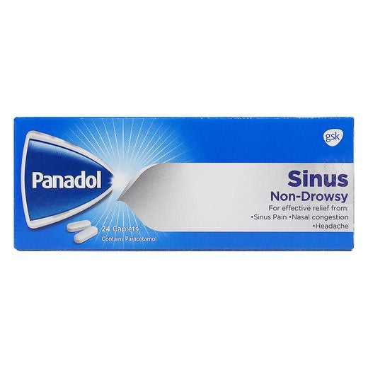 Description: • Panadol Sinus Caplets provide relief from sinus pain and congestion. • Panadol Sinus caplets, containing Paracetamol and Pseudoephedrine Hydrochloride, offer an effective non-drowsy solution for those seeking relief from sinus-related symptoms. • Specifically tailored to combat sinus pain, ease nasal congestion, and mitigate headaches, this product is suitable for adults and children aged 12 and above. Ingredients: • Paracetamol 500 mg • Pseudoephedrine Hydrochloride 30 mg How to use: • Place caplet(s) in mouth and swallow with water.
