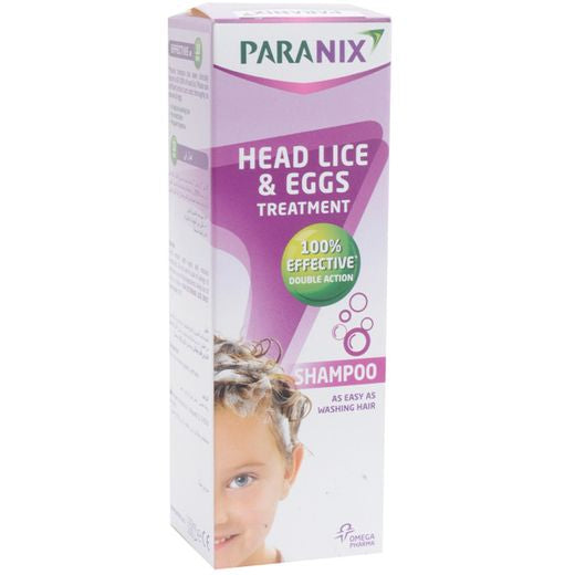 Short Description: • Head lice and eggs treatment • 100% effective • Double action • As easy as washing hair Long Description: Paranix treatments provide a double physical action attacking both head lice and their eggs. Paranix Shampoo suffocate and dehydrate head lice and their eggs. It allows you to treat head in no longer than 10 minutes and washes the hair at the same time. Benefits: • Clinically tested and effective head lice treatment • Does not contain insecticides How To Use: • Check dry hair lock by lock for head lice using the enclosed fine toothed anti lice comb • Apply enough shampoo evenly onto dry hair. Be sure to cover all the hair and scalp • Massage well from the roots to tips paying particular attention to the neck and behind the ears. Wait for 10 minutes • Add enough water to the hair to work up foam. Wash and rinse the hair thoroughly. Be sure to rinse everything out • Before drying the hair, comb thoroughly with the Paranix anti lice comb to remove the lice and eggs. Regularly clean the comb • Repeat the treatment after 7 days
