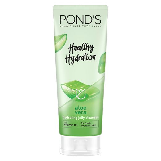 • Pond's Healthy Hydration Aloe Vera Jelly Cleanser is a face wash that gently cleanses your face and hydrates the skin • Enriched with 100% natural origin aloe vera extract and vitamin B3 (niacinamide), it leaves your skin feeling fresh and hydrated • Pond's Healthy Hydration facial wash is 100% alcohol-free and paraben-free without Ethyl Alcohol • A 2-in1 refreshing and hydrating gel cleanser that minimizes pores, leaving skin instantly soft, hydrated and glowing • Pond's Healthy Hydration Jelly Facial Cleanser is tested by dermatologists • It is suitable for all skin types • Like this face wash? Check out more of the Pond's Healthy Hydration Aloe Vera Collection: Pond's Healthy Hydration Aloe Vera Sheet Masks and Pond's Healthy Hydration Aloe Vera Moisturizer