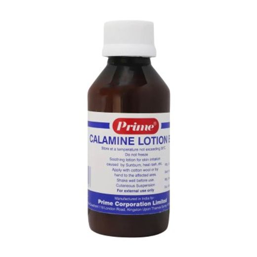 Short Description: • Soothing lotion • For skin irritation • For externl use Long Description: Prime Calamine Lotion is indicated for minor skin irritations like sunburn and heat rash. It cools the skin by evaporation and useful relieving the pain of sunburn. Benefits: • Use as protective application in eczema • Protective for slight abrasions • Soothing for skin irritation How To Use: Apply with cotton wool to the affected area as required. For external use only.