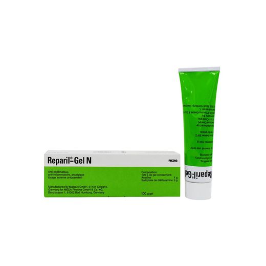 Short Description: • Anti-swelling • Anti-inflammatory • Pain-relieving Long Description: Reparil gel is a special formulation with a 3-fold action: Anti-edematous, anti-inflammatory and pain-relieving. It is usually indicated in cases of contusions, crush injuries, sprains, bruises, hematoma and tendonitis. Painful conditions of the vertebral column (disc lesions, neck pain, lumbago, and sciatica), superficial thrombophlebitis, and varicose veins or for care of the veins after injections or infusions. Benefits: • Transparent and penetrates rapidly and completely into the affected tissues • It does not make the skin greasy, does not smear and is therefore particularly clean and pleasant to use; • Reparil gel cools the painful area, is kind to the skin and is outstandingly well tolerated even on sensitive parts of the skin. How To Use: • Unless otherwise directed, spread a thin layer of the gel onto the skin of the affected area once daily or more frequently. • It is not necessary to rub the gel into the skin, but this may be done if desired.