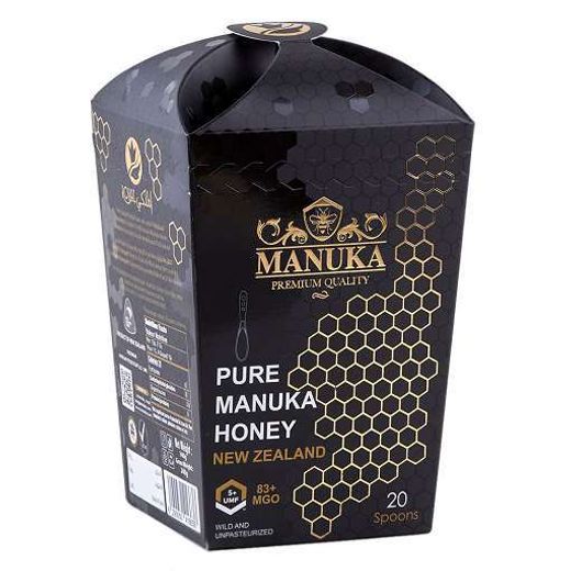 Dark honey produced by bees which pollinate the flowers of the manuka bush that contains active compounds giving it natural antimicrobial properties which sets it apart from regular honey - 125 gm