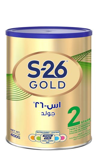 Description: • S-26 Gold Stage-2 is a spray dried follow-up formula with DHA ARA, Choline & Selenium for infants after 6 months when they are not breastfed. • S-26 Gold Stage 2 contains DHA, Iron and Choline which supports baby’s normal brain development. • It also contains Vitamins A which supports normal vision development, and Selenium which contributes in normal functioning of the immune system. • The follow up formula powder has Vitamin D and protein to support normal development of bones and normal muscle growth respectively. Tin format baby food ensures enhanced safety, hygiene and convenience. Ingredients: • Milk solids • Soyabean oil • High oleic sunflower oil • Coconut oil • Acidity regulators(Potassium citrate • Sodium citrate • Calcium hydroxide • Citric acid • Sodium hydrogencarbonate and Potassium hydroxide) • Minerals‡ • Vitamins§ • Oil mix (Arachidonicacid (ARA) from Mortierella alpina oil • High oleic sunflower oil and Antioxidants (Mixedtocopherol concentrate and L-Ascorbyl palmitate)) • Emulsifier (Soya lecithin),Oil mix (Docosahexaenoic acid (DHA) from Crypthecodinium cohnii oil • High oleicsunflower oil and Antioxidants (L-Ascorbyl palmitate and Mixed tocopherol concentrate)),Inositol and Antioxidants (Mixed tocopherol concentrate and L-Ascorbyl palmitate)). How to use: • Wash your hands before preparing formula. • Sterilize utensils including the feeding bowl and spoon. • Boil drinking water for 5 minutes and leave it till lukewarm. • Pour exact amount of lukewarm water as per feeding table. • Consult feeding table and add exact number of leveled scoops for age of baby. Only use scoop provided. Shake/ mix to dissolve powder. • Feed the baby with bowl and spoon. Discard leftover feed. Storage Instructions : Store in cool and dry place