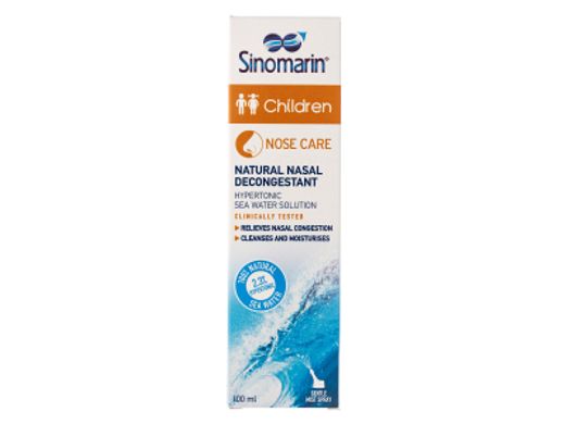 Short Description: • Natural nasal decongestant • Hypertonic sea water solution • 100% natural • Clinically tested Long Description: Sinomarin Children Hypertonic Nose Care Spray is ideal for babies and children as it helps to decongest blocked nasal cavities via the natural mechanism of osmosis, restoring nasal breathing naturally. It also helps to cleanse the nasal cavities by eliminating mucus and mucus trapped impurities thus preventing nasal and secondary infections and complications. Benefits: • Improves quality of life by alleviating symptoms linked to nasal congestion • Relieves nasal congestion • Cleanses and moisturizes • Preservative, drug and chemical free How To Use: • Use 1 to 2 sprays in each nostril 2 to 3 times daily or as per physicians’ instructions • See enclosed insert for more information prior to use