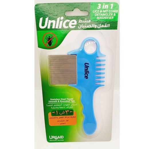 Urgaid Unlice 3 In 1 Lice & Nit Comb Detangler & Magnifier With Statinless Steel Tooth Smooth & Rounded Tips Ul1512 is sold on Talabat by Oasis Pharmacy and will be delivered to you across UAE within minutes. Shop online and enjoy our quick delivery service.