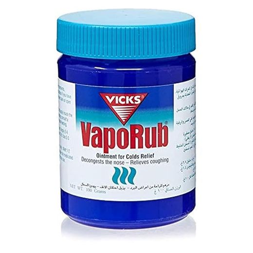Short Description: • Ointment for colds relief • Medicated vapors • Easy to use and handy • Starts working quickly Long Description: Vicks VapoRub Ointment For Cold Relief is a branded cough and cold product appropriate for ages two and up. It is a topical cough medicine with medicated vapors. It starts working quickly for children and adults to relieve cough and cold symptoms. For temporary relief of nasal congestion and coughs associated with colds. Benefits: • Decongests the nose • Relieves coughing • For muscle/joint minor aches and pains including headache How To Use: • Adults and children over 6 years: Apply 2-4 times to the chest, neck and back • Children between 2-5:Use 2-3 times daily, do not apply to face • Inhalation for adults and children (above 6 years old only): Melt 1-2 spoons in 1/2 liter of hot (not boiling) water and Inhale the medicated vapors • Do not heat while inhaling • Do not reheat after use • Contraindications: Hypersensitivity to any of the ingredients, hypersensitivity of the airways • Do not use for inhalation if you have acute pneumonia • Do not use on damages or inflames skin or open wounds • Do not use on children under 2 years • For external use only • Do not swallow, or apply inside the nose or mouth • In case of pregnancy or breast-feeding, consult a doctor • Do not apply in chest area if you are breast feeding • Store below 30 degree Celsius