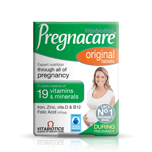 Description: •Pregnacare prenatal is formulated with 19 important vitamins and minerals, including: *400µg folic acid: Contributes to maternal tissue growth during pregnancy *10µg vitamin D: has a role in the process of cell division *Vitamins B2, B6 and B12: contribute to normal red blood cell formation *Zinc: contributes to normal reproduction *Vitamin B12: contributes to normal red blood cell formation and also has a role in the process of cell division *Iron: specifically formulated with an ideal, moderate level of iron •Pregnacare is recommended to build up the stores of nutrients such as iron in women who are trying for a baby •You can start taking Pregnacare at any point during pregnancy •Suitable for vegetarians •No artificial colours, preservatives, yeast, lactose or gelatin •Gluten-free •Directions: Take one tablet daily with your main meal Storage Instructions: Room Temperature