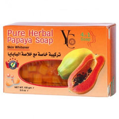 • Premium quality pure herbal papaya soap • Contains glycerine for moisturizing • Formula 4 in 1 skin whitener • No harmful ingredients or bleach to ensure safe and reliable use • Herbal papaya cubes whitens the skin with its papaya extract • Clear transparent soap is for sensitive skin use